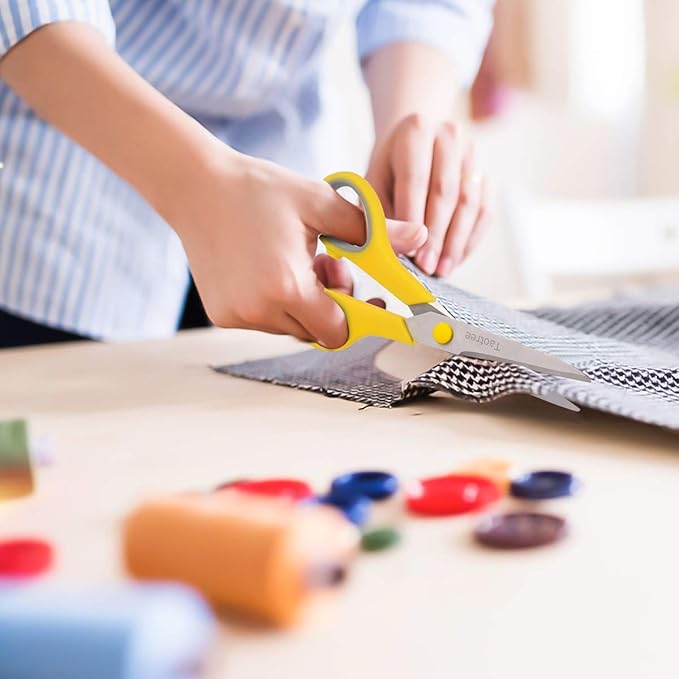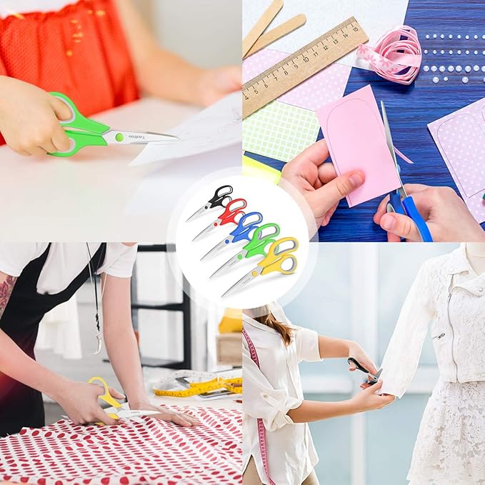 - Comfortable Use: Soft-grip handles for comfortable use, can be used left- or right-handed. Adjustable stainless-steel blade pivot for strength and smooth opening and closing. Work perfectly, and are comfortable in your hand. Can be used as scissors for office, scissors for school, scissors for home, 8 scissors, scissors bulk Craft scissors, fabric Scissors, heavy duty scissors, scissors pack, Left scissors, sharp scissors, sewing scissors, cutting patterns, alterations, hand craft.