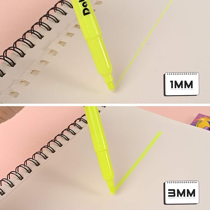 - PRACTICAL PEN HOLDER DESIGN:The barrel design of highlighter is very practical.In addition to matching the color of the barrel with the color of highlighter, the most appropriate size is selected according to the user feedback. Comply with ergonomics, so that you will not be tired after using for a long time. And each highlighter has a large reserve of ink, it keeps writing for a long time.