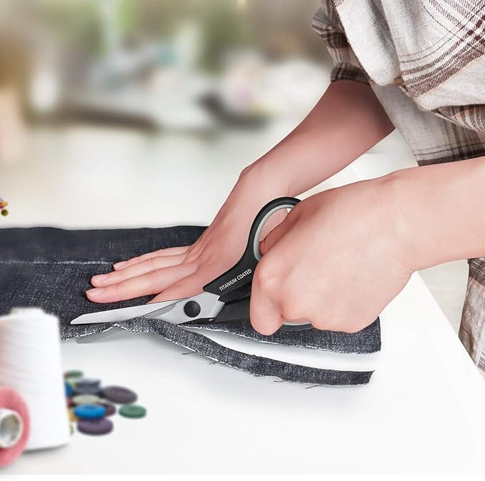 Scissors 8" Multipurpose Titanium Coated Sturdy Sharp Scissors Right/Left Handed Comfort-Grip Handles for Office Home School Sewing Fabric Craft Supplies Black