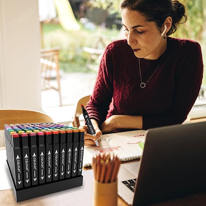 - 【Two Marker Pen Holders】The art markers comes with two pen holder which can make your markers look organized,you can easily put the pen down without worrying about it rolling off the table or getting lost. These features make the alcohol markers set a practical and user-friendly choice, ensuring easy access and efficient storage.