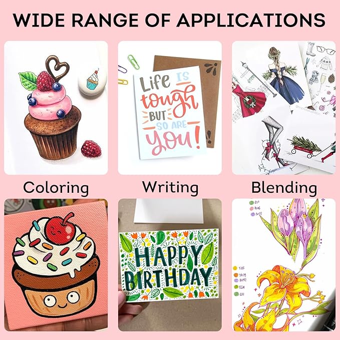 - 【Premium Art Markers】The quick-drying ink make it easy to keep clean,smooth and evenly,that resists smudging and fading. This not only prevents accidental smudging that can ruin your work but also allows for faster layering and blending without waiting, boosting your creative workflow. Plus, the fade-resistant formula protects your vibrant artwork for long-lasting enjoyment.