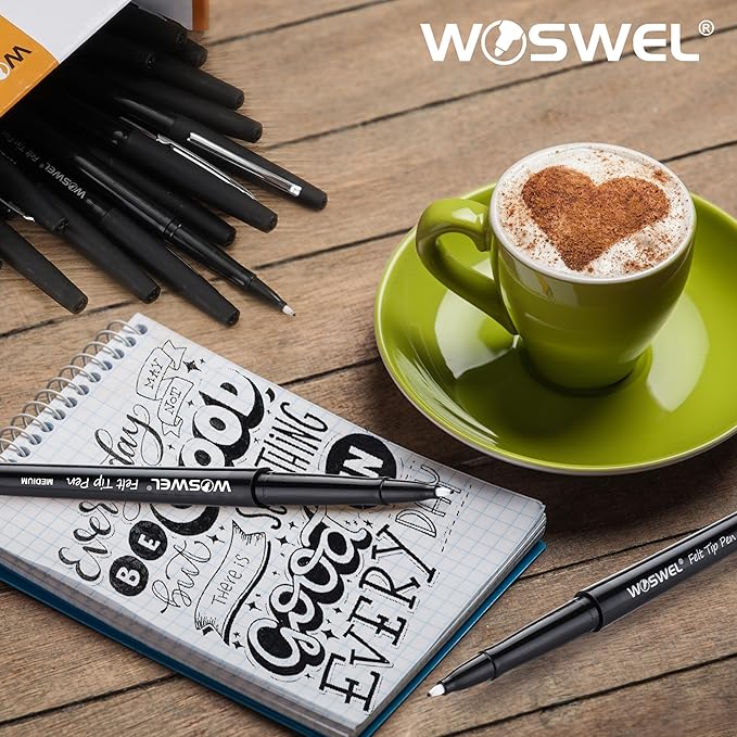 - Set of 60 Black Felt Tip Pen: 0.7mm Medium tip pens set has 60 black pens.
