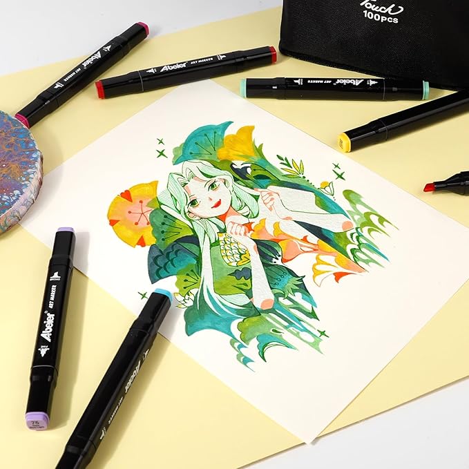 ABEIER 100 Colors Dual Tips Alcohol Markers Set, Art Markers for Drawing, Permanent Sketch for Kids Adult Coloring