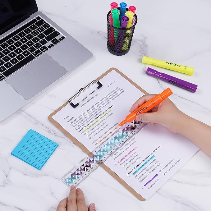 - The highlighters feature quick-drying ink to prevent smears and smudges (let ink dry before highlighting).