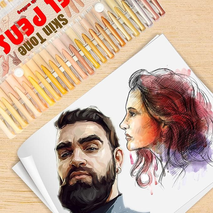 Skin Tone Gel Pens for Coloring Book,72 Color Gel Pens Set including 24 Color Gel Pen with 48 Refills,40% More Ink Colored Gel Pens for Drawing, Doodling, Scrapbook, Journaling