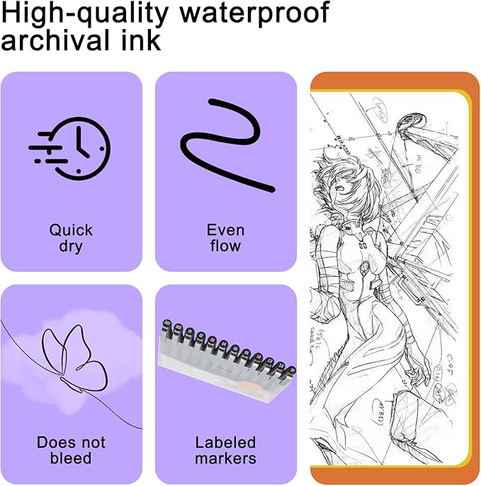 - Waterproof Archival Pigment Ink: Don't let bleed and smudges ruin your artwork. Our archival grade ink are no bleed through, no smear, waterproof, fade resistant, quick drying, water-resistant, sun proof, photo safe, non bleeding, acid free, non-toxic, odorless and last long.