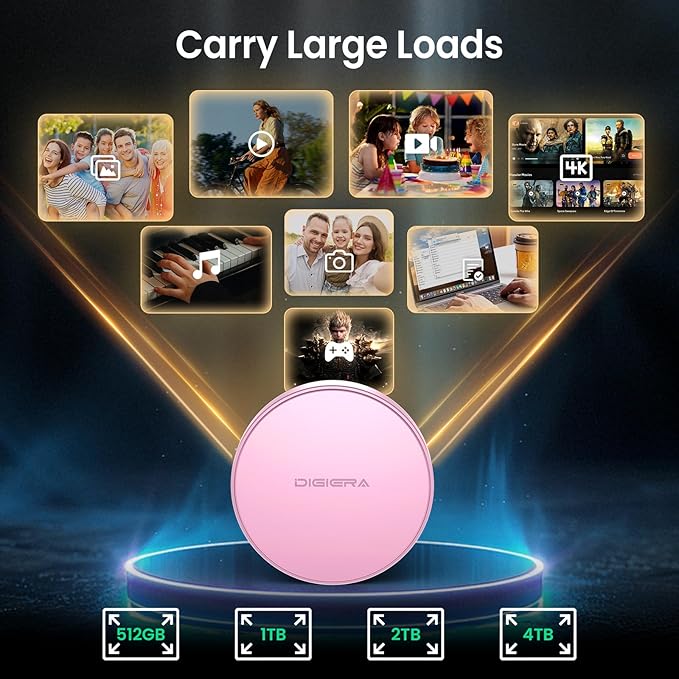 - Wide Compatibility for Effortless Integration: The DIGIERA solid state drive features universal compatibility with a USB Type-C interface, working seamlessly with laptops, tablets, gaming consoles, and most smartphones. Its plug-and-play functionality means instant access for students, freelancers, and multitaskers on the go. NOTE: Only compatible with iPhone 15 series and newer. Not compatible with iPhone 14 and earlier models