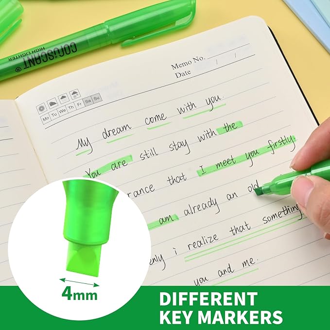 - RELIABLE and SAFE :Highlighter quality meets AMCI standards๏ผnon-toxic.The set contains 40 green highlighters bulk