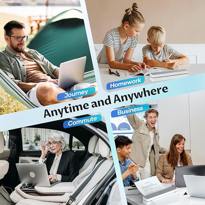 - Print Anytime and Anywhere:This compact printer only 498g and 26 x 5.6 x 4.6 cm body size, which is lightweight, whether you are in the car, at home, outdoors or your travels, you can print your contracts, office documents, lists, invoices, labels and any documents you need at any time. It is also the best choice as a gift