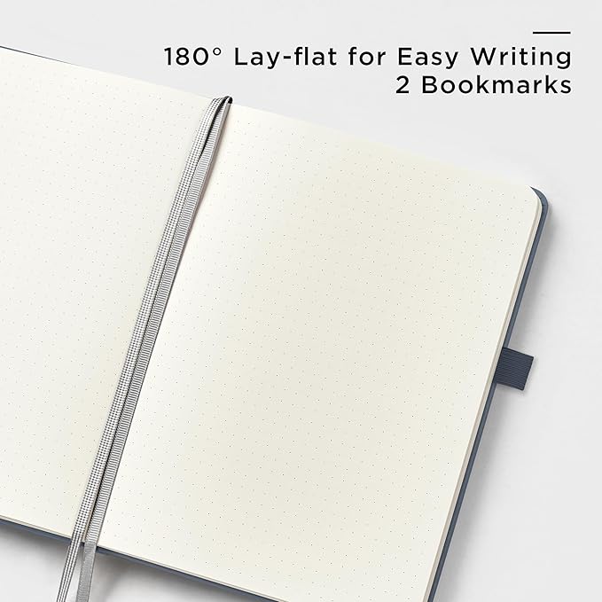 - 180° LAY-FLAT DESIGN: The lay-flat design allows for easy writing and ensures that you can utilize every page efficiently. Journaling, note-taking and planning has never been easier! 2 Bookmarks to help you find important content faster