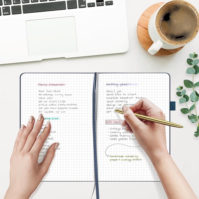 - 180° LAY-FLAT DESIGN: The lay-flat design allows for easy writing and ensures that you can utilize every page efficiently. Journaling, note-taking and planning has never been easier. 2 Bookmarks help you find important content faster