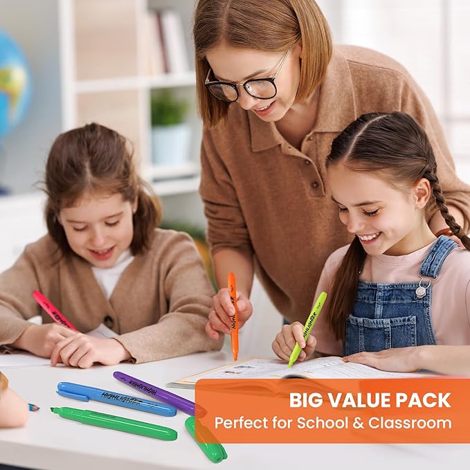 - Big Value Pack - Includes 288 vibrant highlighters in 6 assorted colors—pink, orange, yellow, green, blue, and purple. Easily color-code notes and materials for better organization, making it ideal for both study and work.