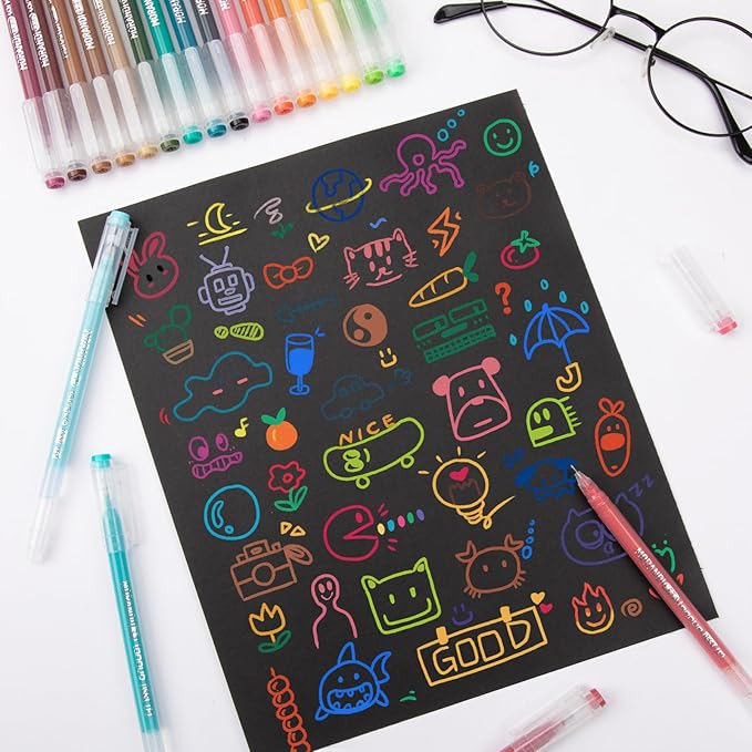 - 【 Multi-Purpose Usage】The gel pen set is an ideal art supply for adults and kids, perfect for coloring books, bullet journaling, sketching, drawing, writing, comics, and any other designs on Scrapbooks, School Projects, Party Invites, Greeting Cards, DIY Decor, Letters to Friends or Family.